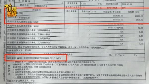 从当天事故现场的照片可以看到,法拉利右前脸已经被撞得面目全非。罗女士说,她这辆车的保费要3万元一年,承保单位是中国人保。从罗女士的保单上可以看到,机动车损失险和第三者责任险都是200万元,保险在今年6月29日到期。