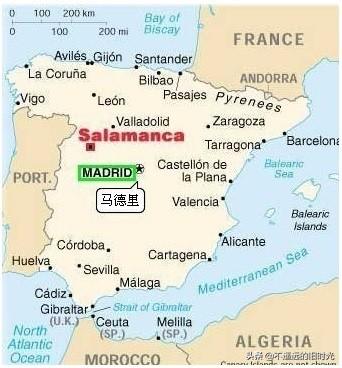 萨拉曼卡(Salamanca),位于马德里西北212公里(如上图),
