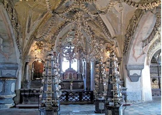 这是一个小小的教堂,总共用4万多个人的骨头打造的,看着画面都觉得害怕,这些骨头都是成年女子的骨骸。看着这些恐怖的骷髅头你都不敢想这些骨头是哪里来的。