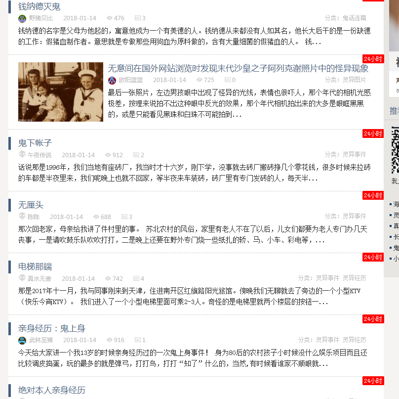 网站各种灵异事件,都是以亲身经历描述!喜欢的可以百度搜过上面名字。