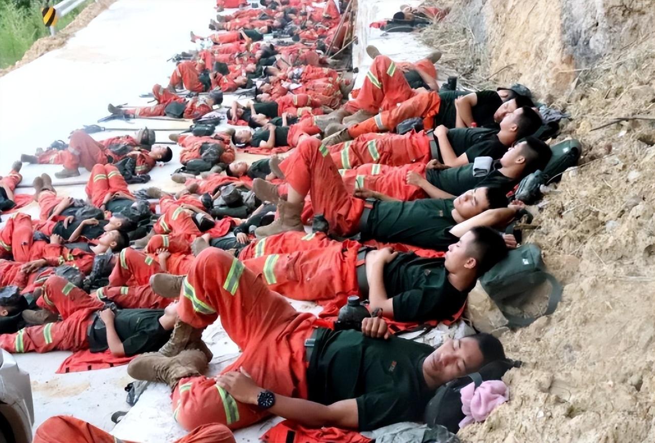 山上,消防人员承受着天气和烈火的双重炙烤,一干就是十几个小时。