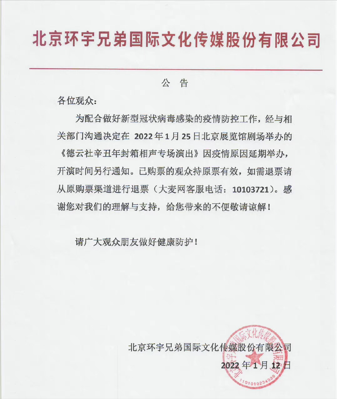 针对网传的《辛丑年德云社封箱相声专场演出》,其实原定演出日期在2022年1月25日。