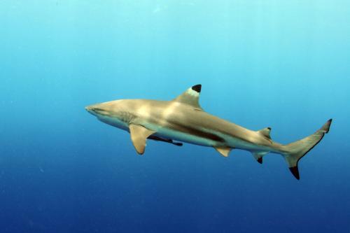 黑鳍鲨学名乌翅真鲨,是一种体型非常小的鲨鱼。黑鳍鲨是鲨鱼中为数不多的可以进行无性繁殖的鲨鱼品种,在没有雄鲨鱼的情况下,雌性鲨鱼也会回到他们的生产地,胎生下小鲨鱼,待生产完成后便与小鲨鱼一起回到原来的地方。