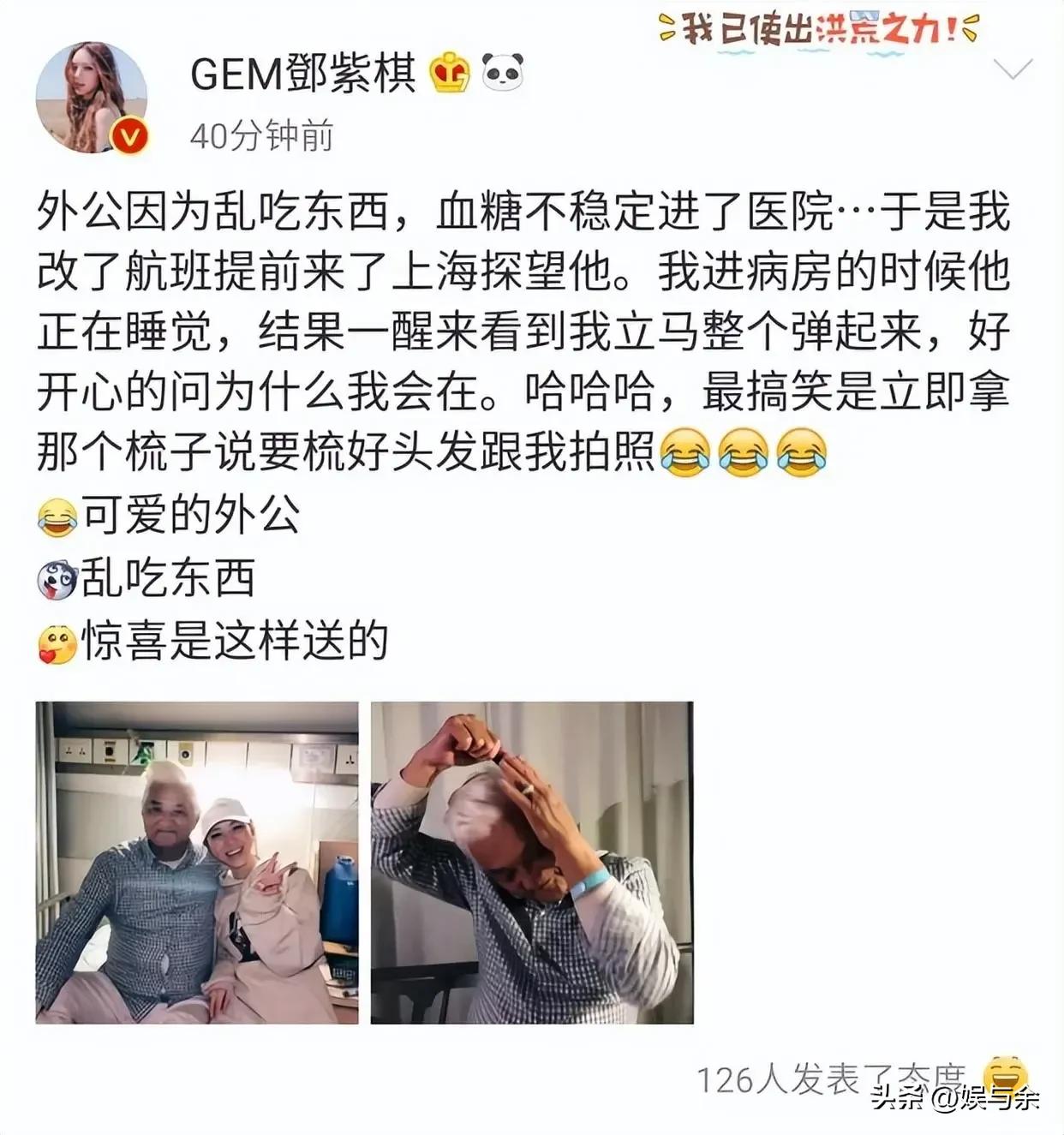 在邓紫棋的发文中没有哭诉对外公的不舍,而是晒出了与外公在一起生活的点点滴滴。