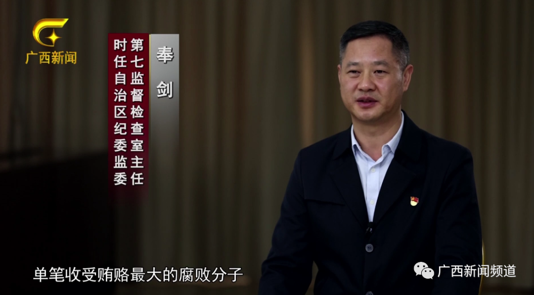 时任自治区纪委监委第七监督检查室主任 奉剑:韦绍艺是桂林市近年来查处的收受贿赂总额最多、单笔收受贿赂最大的腐败分子。党的十八大乃至十九大以来,韦绍艺非但没有收敛,反而变本加厉,索贿受贿,性质恶劣。