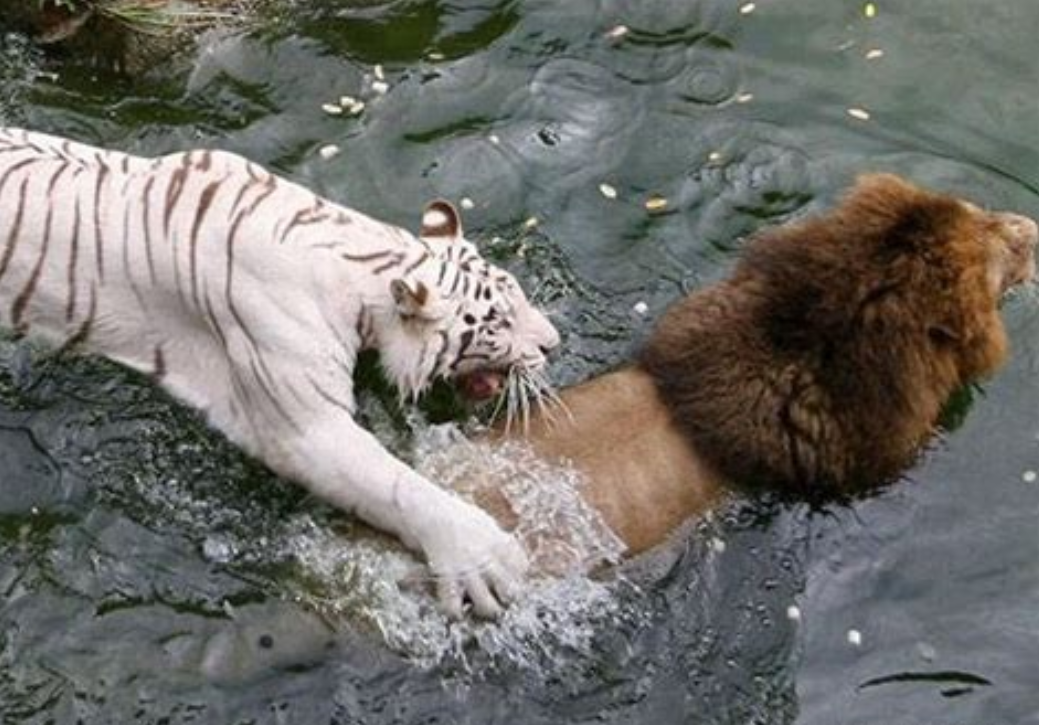 不过人们将老虎和狮子关进了动物园,反而创造出来了很多狮虎斗的机会。在土耳其的安卡拉动物园曾经发生这样一起事故,一头白化的孟加拉虎闯入隔壁非洲狮的笼子,用虎掌拍倒了非洲狮,随后用牙齿对其锁喉,一击毙命。